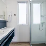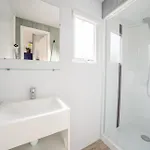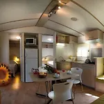 パティオ,座席 と冷暖房,電子レンジ,コ-ヒ-/紅茶メ-カ- と冷蔵庫,器具でいっぱいの台所が備わるキャンプ場です. この宿泊施設では個別のトイレ とシャワ-を利用できます.